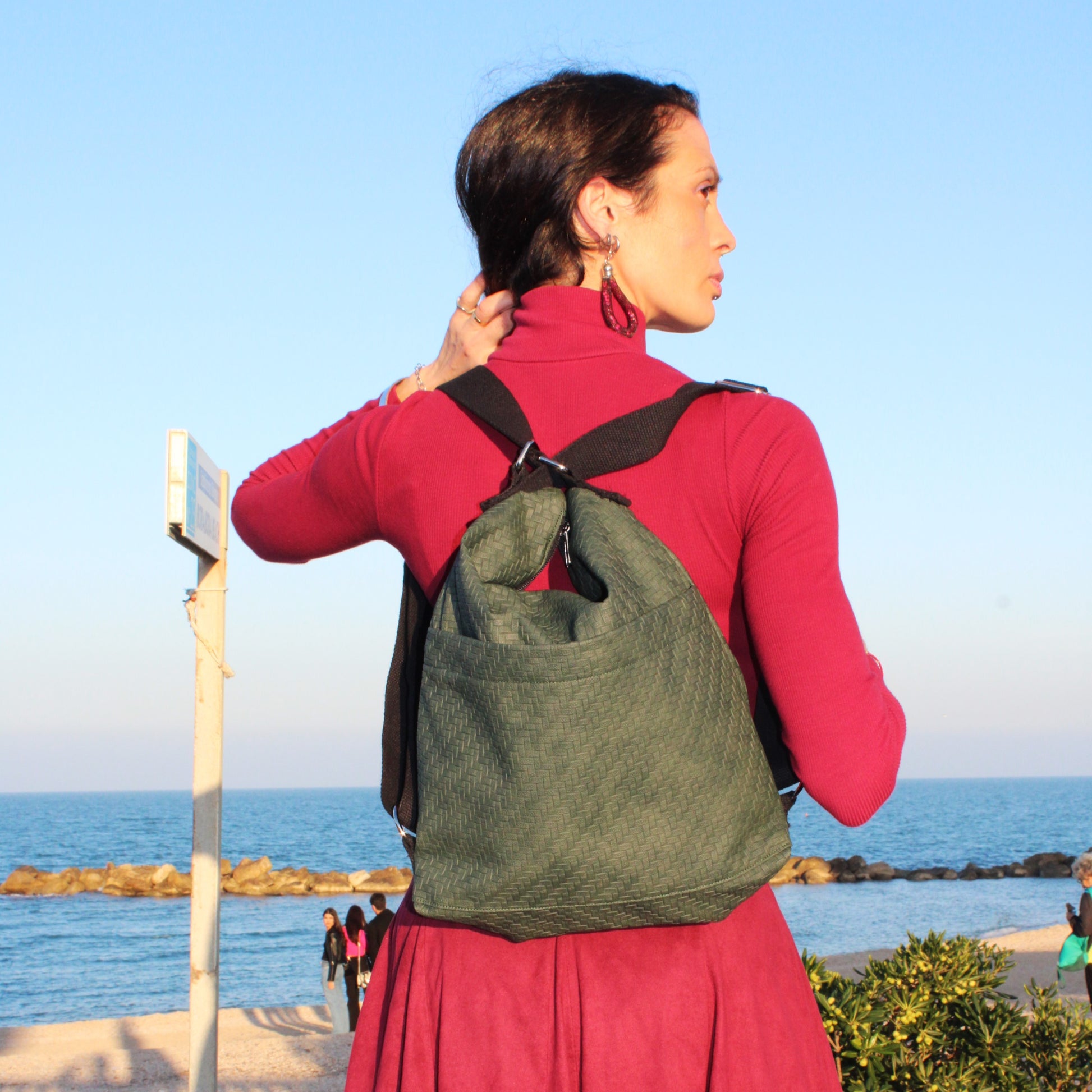 Backpack/Bag mod. Orion in vegan Leather Labyrinth green